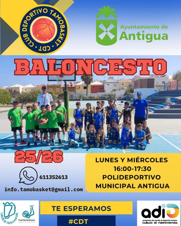 Antigua, 24 de octubre de 2025. La nueva temporada de baloncesto ha comenzado esta semana en Antigua con los entrenamientos del CD Tamobasket, que arranca su cuarto año de trabajo en el municipio con sesiones los lunes y miércoles, de 16:00 a 17:30 horas, en el Pabellón Municipal.
