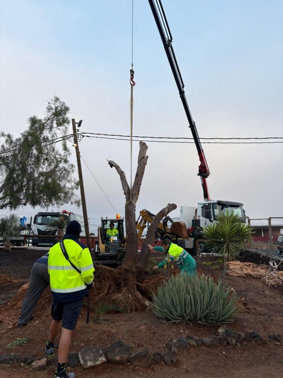 Entre las actuaciones realizadas destaca el replantado de varios árboles de gran tamaño derribados por el viento, así como la recuperación y reubicación de un ejemplar en la zona del Belén. Asimismo, se han atendido numerosas incidencias relacionadas con palmeras y ramas caídas, además de árboles afectados en los huertos urbanos y en diferentes calles y espacios públicos del municipio.