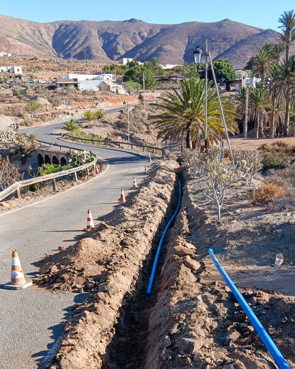 Las actuaciones se ejecutan en los núcleos de Valle de Santa Inés, Red Aguas Verdes, Betancuria, La Vega y Campo Viejo, donde se están sustituyendo conducciones antiguas por tuberías de PVC y PE-100, materiales más resistentes y duraderos adaptados a las condiciones del terreno.