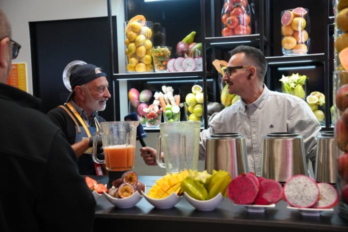 Graciliano Díaz recibió este año, por sorpresa, un emotivo homenaje en el pabellón de Canarias en FITUR, en reconocimiento a más de 30 años ofreciendo el sabor del Archipiélago a través de sus ya míticos zumos naturales.