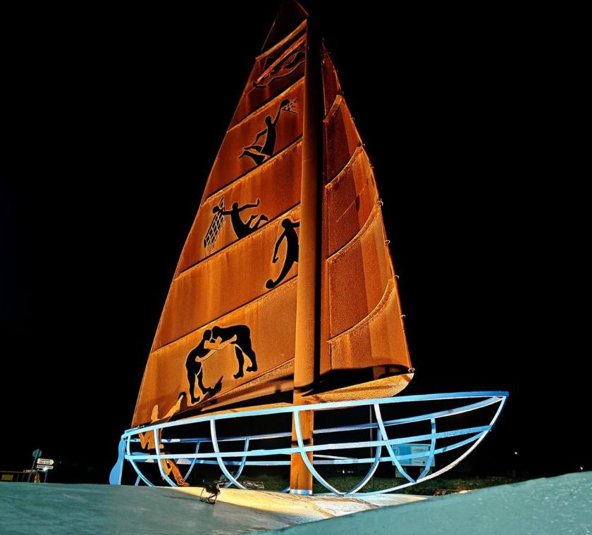 La intervención ha incluido también la instalación de nuevo alumbrado interior para resaltar la cartelería y la embarcación que preside la rotonda, junto con la rehabilitación del casco y la mejora estructural del barco. A ello se suma la incorporación de nueva iluminación vial, incrementando la seguridad, la visibilidad y el confort tanto para conductores como para peatones.
