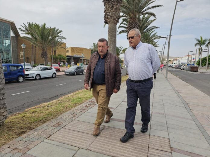 El alcalde de Antigua, Matías Peña García y el concejal de Obras, Servicios, Parques y Jardines, Juan Cabrera visitan la actuación de embellecimiento que se desarrolla en la mediana en Caleta de Fuste emplazada entre dos avenidas principales, Castillo y Alcalde Juan Évora Suárez.